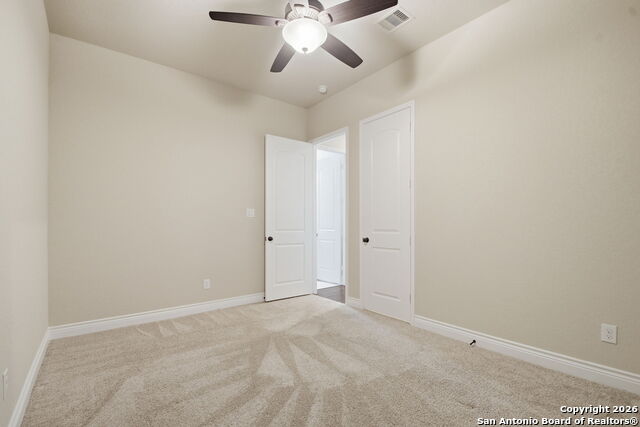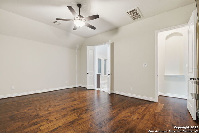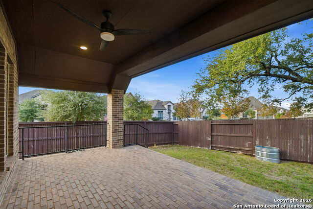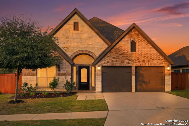Beautifully maintained 4-bedroom, 3-full-bath home with a dedicated office in the sought-after Veramendi community, ideally positioned on a premium corner lot near one of Veramendi's pocket parks. Compared to similar Veramendi homes, this property offers a larger lot footprint, providing extra space, privacy, and curb appeal that truly sets it apart. Inside, the home feels lightly used and exceptionally well preserved, featuring upgraded wood flooring throughout the main living areas. Thoughtful enhancements include solar screens for improved energy efficiency and a water softener. One of the bedrooms offers a private ensuite bathroom, making it ideal for guests, multigenerational living, or a flexible secondary primary suite. The residence has seen minimal day-to-day occupancy in recent years, contributing to its like-new condition while reflecting pride of ownership. Located just steps from Emerson Park, this home provides easy access to walking trails, green space, and the signature lifestyle Veramendi is known for. A rare opportunity to own a move-in-ready home on a larger corner lot in one of New Braunfels' most desirable master-planned communities.