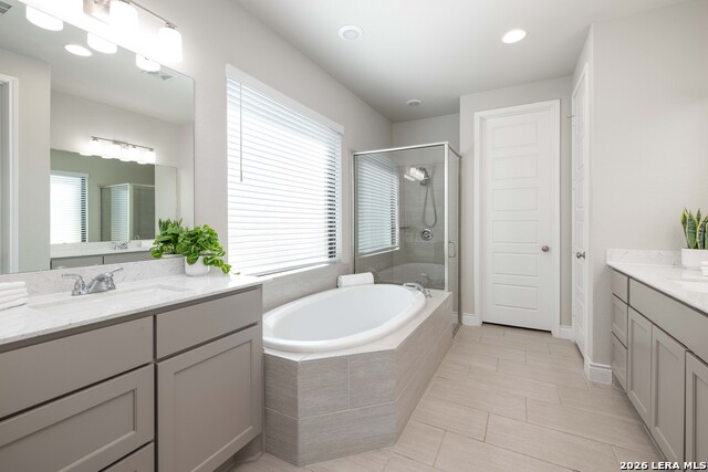 Better than brand new, this beautifully maintained Perry Home comes loaded with upgrades that save you time and money from day one. From professionally enhanced stone landscaping to a premium Terra water softener with reverse osmosis and a Rheem tankless water heater, every improvement has already been thoughtfully handled. Inside, the extended entry sets the tone with dramatic 12-foot ceilings and a seamless flow into the main living spaces. The kitchen anchors the home with an oversized island, abundant counter space, custom cabinetry, and a generously sized pantry. Natural light pours in through a wall of windows, creating a bright, open feel throughout the living and dining areas. The primary suite offers a peaceful escape, highlighted by tall ceilings and expansive windows. The adjoining bath features dual vanities, a soaking tub, a glass walk-in shower, and a spacious closet with direct access to the laundry room-an everyday convenience you'll quickly appreciate. A separate guest bedroom with its own private bath ensures comfort and privacy, while the mudroom off the garage adds practical functionality to the layout. Step outside to a covered patio ideal for gatherings or quiet evenings, complete with a full sprinkler system and a privacy fence that frames the backyard. Polished, well-appointed, and move-in ready, this home delivers comfort and style without the wait of new construction!